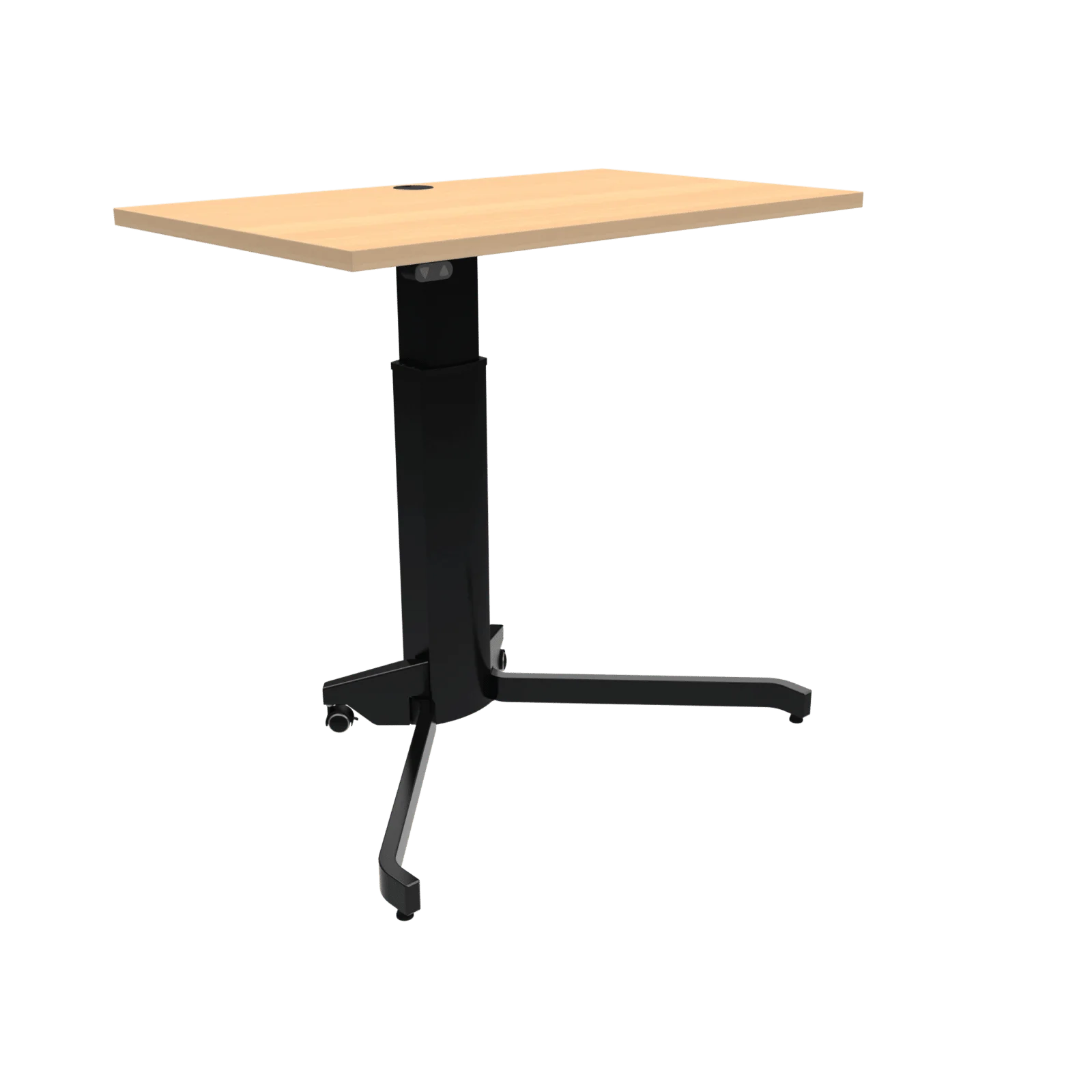 Hæve sænkebordet på hjul kan vælges med under- og overfalde i hvid, sort (100×60 cm) valnød eller bøg melamin med 2 mm ABS kant i samme farve og kommer med en integreret kabelgennemføring. Det lille hæve sænkebord kan vælges med forskellige typer og størrelser af bordplader.