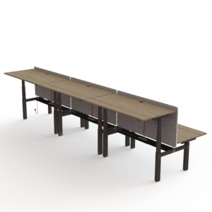 Et yderst funktionelt dobbeltbord. Dobbeltbordet er velegnet i større kontormiljøer og designet gør det nemt at adskille de to arbejdspladser med en skærmvæg. 501-88 hævesænke bord er et funktionelt, robust og stabilt bord i alle henseender. Der tabes lidt fleksibilitet i indretningen, men meget andet vindes, som pladsoptimering og letter rengøring, da det ikke er fødder på benene.